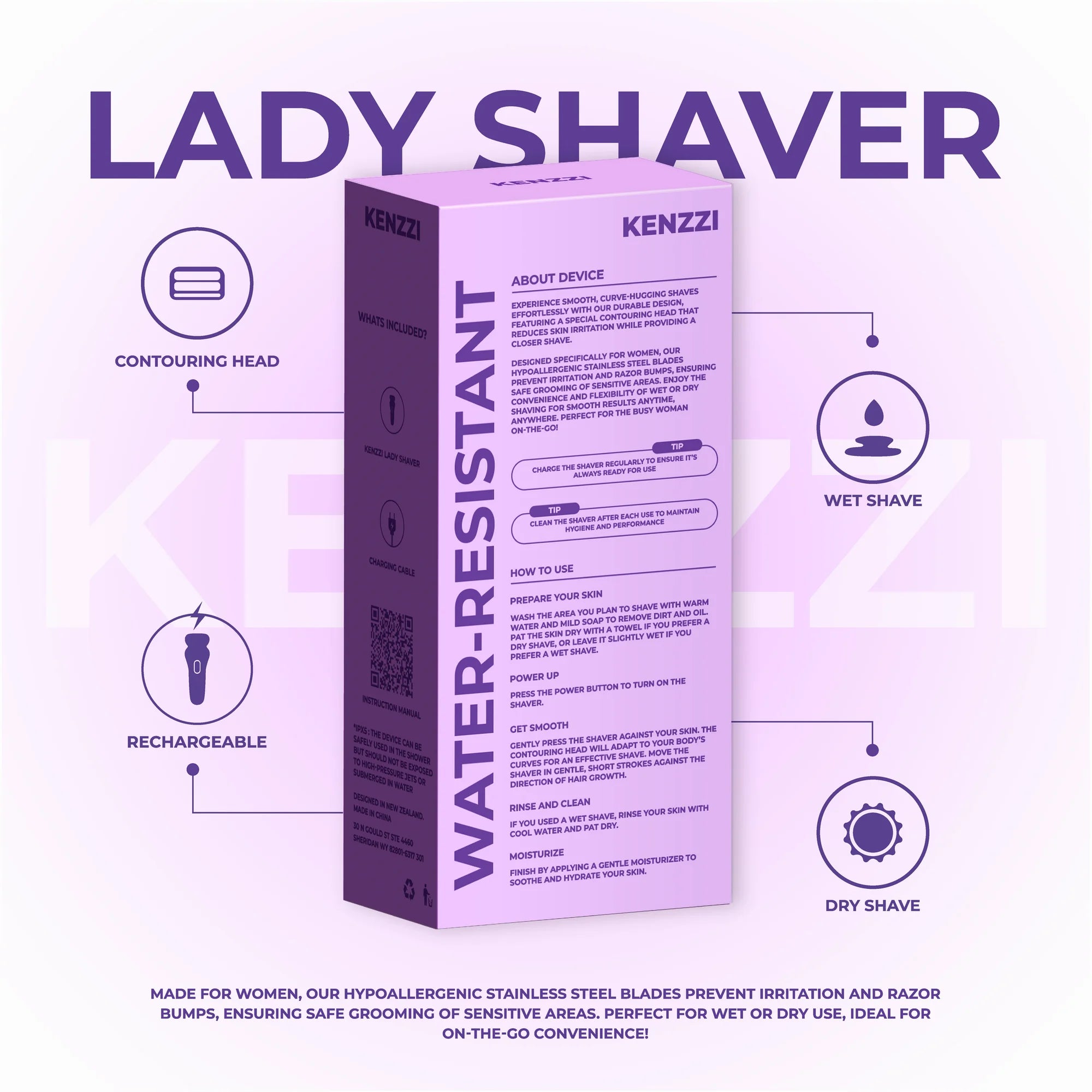 KENZZI Lady Shaver Rechargeable Electric Shaver for Women, Wet & Dry Use, Water-Resistant, Contouring Head